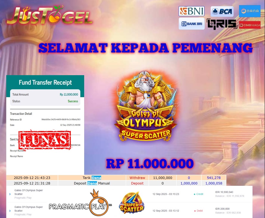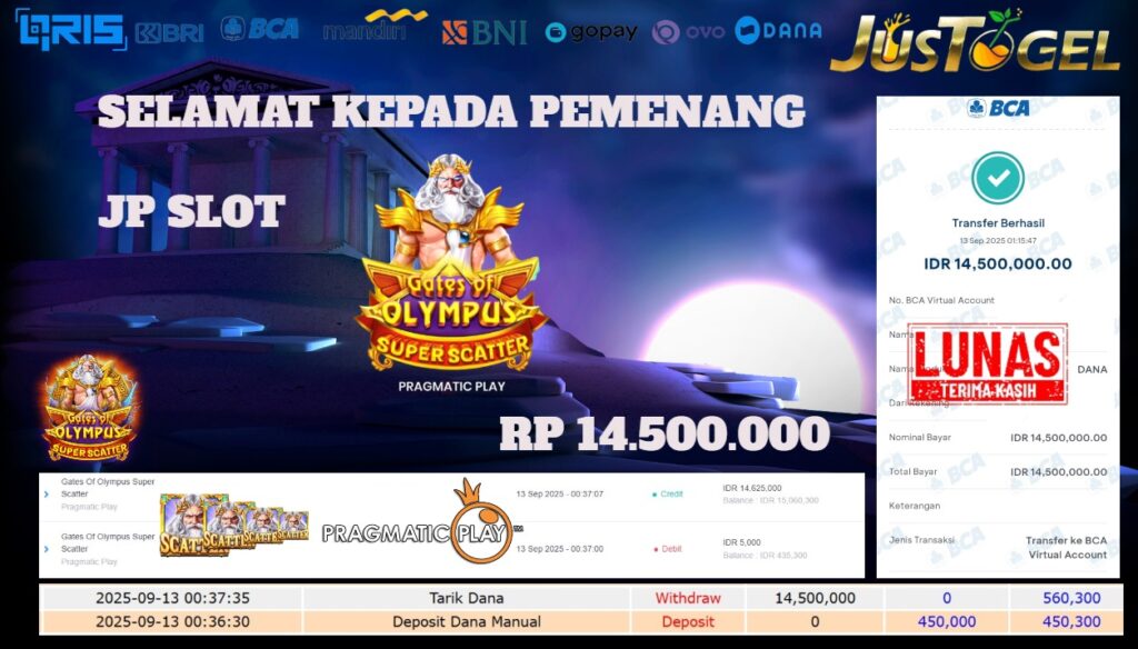 Kami mengucapakan banyak Terima Kasih Kepada pemenang karena sudah mempercayakan kami sebagai Bandar Tepercaya yang membayar semua kemenangan member hingga lunas.