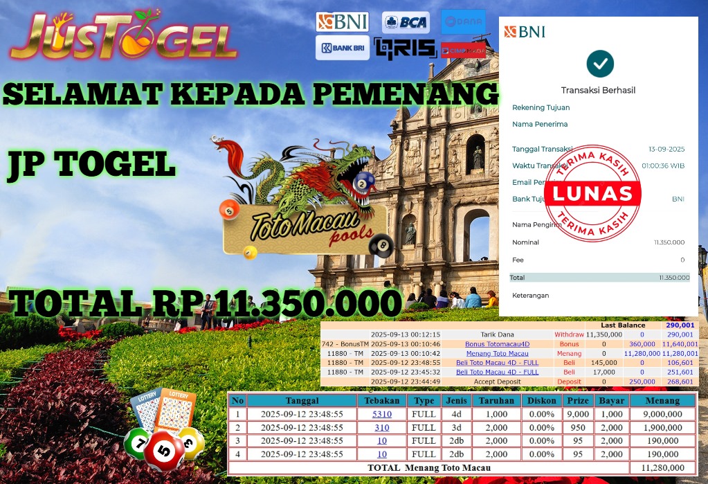 SELAMAT KEPADA MEMBER JP TOGEL TOTOMACAU 5D GAMES TOTAL Rp. 18.000.000.- LUNAS