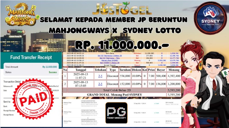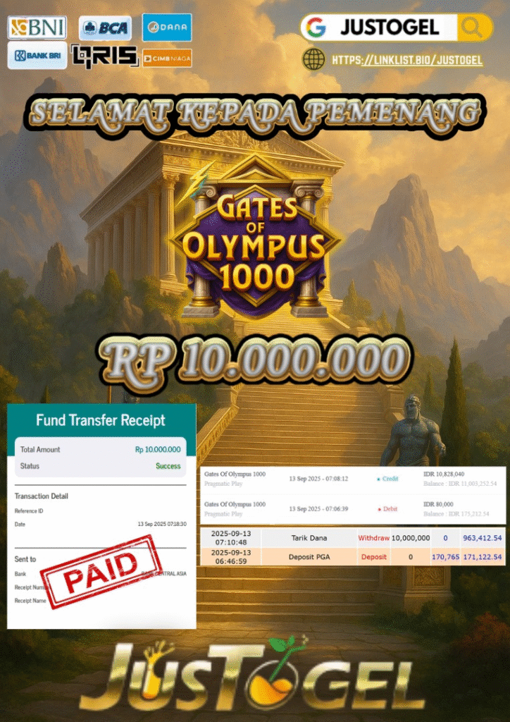 Selamat kepada User ID : SIN**22 Telah berhasil mendapatkan kemenangan besar pada Permainan JP TOGEL TOTOMACAU 5D GAMES Dengan kemenangan Sebesar Rp 18.000.000,- Setelah mengisi formulir withdraw dengan kurung waktu hanya 5-10 menit pihak JUSTOGEL sudah melakukan transfer kepada pemilik User ID dan dana sudah dapat di cairkan oleh pemenang. Bukti pembayaran yang kami berikan merupakan bukti pembayaran yang SAH / VALID yang langung di dapatkan melaui tanda transfer transaksi dari Bank yang di tuju.