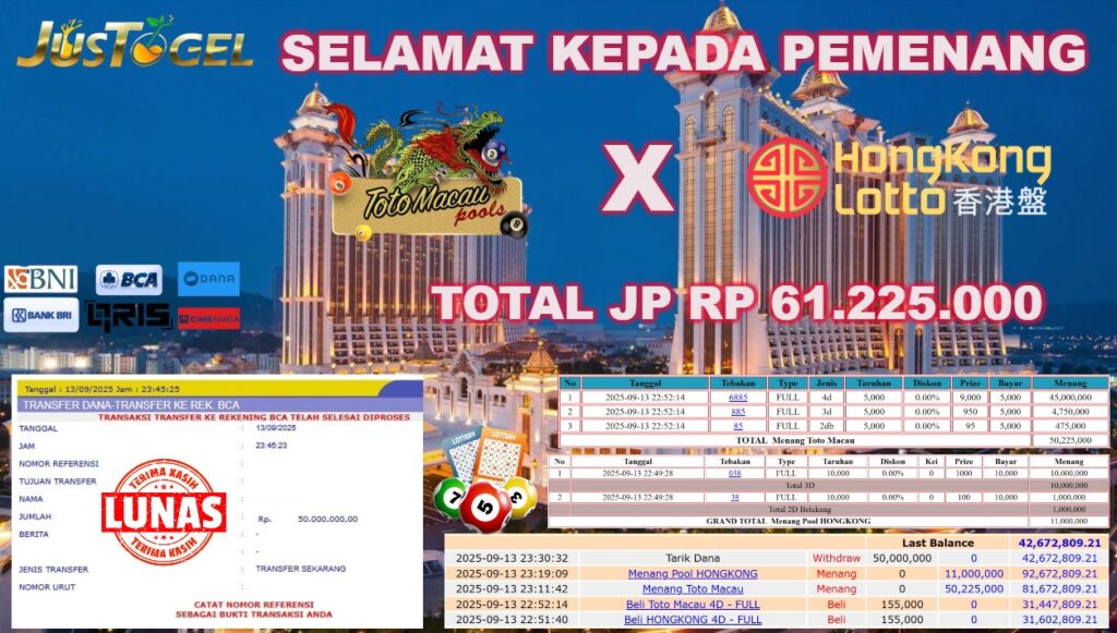 Kami mengucapakan banyak Terima Kasih Kepada pemenang karena sudah mempercayakan kami sebagai Bandar Tepercaya yang membayar semua kemenangan member hingga lunas.